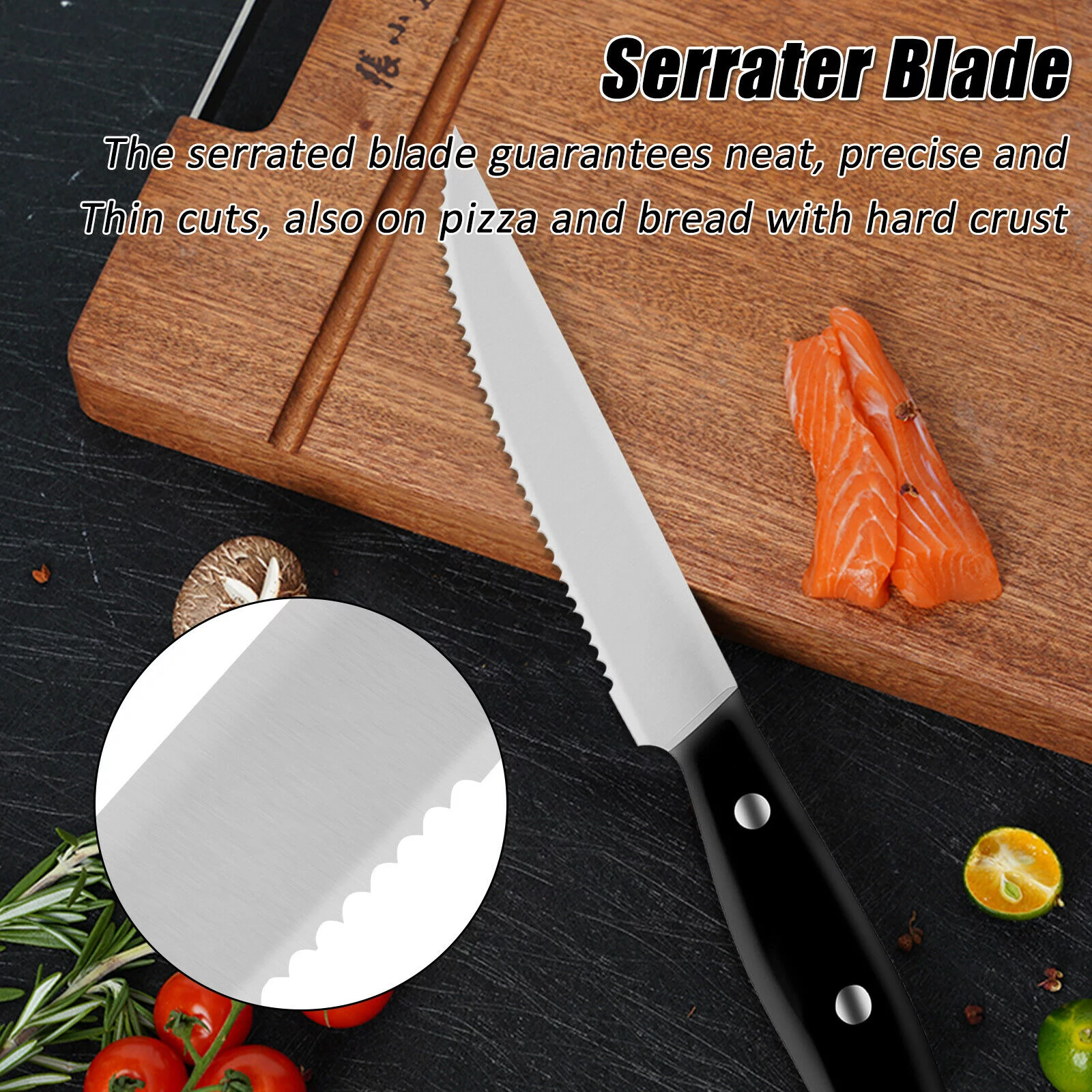 "6PKS Triple Rivet Collection Sharp Blade Flatware Steak Knife Set, Black"