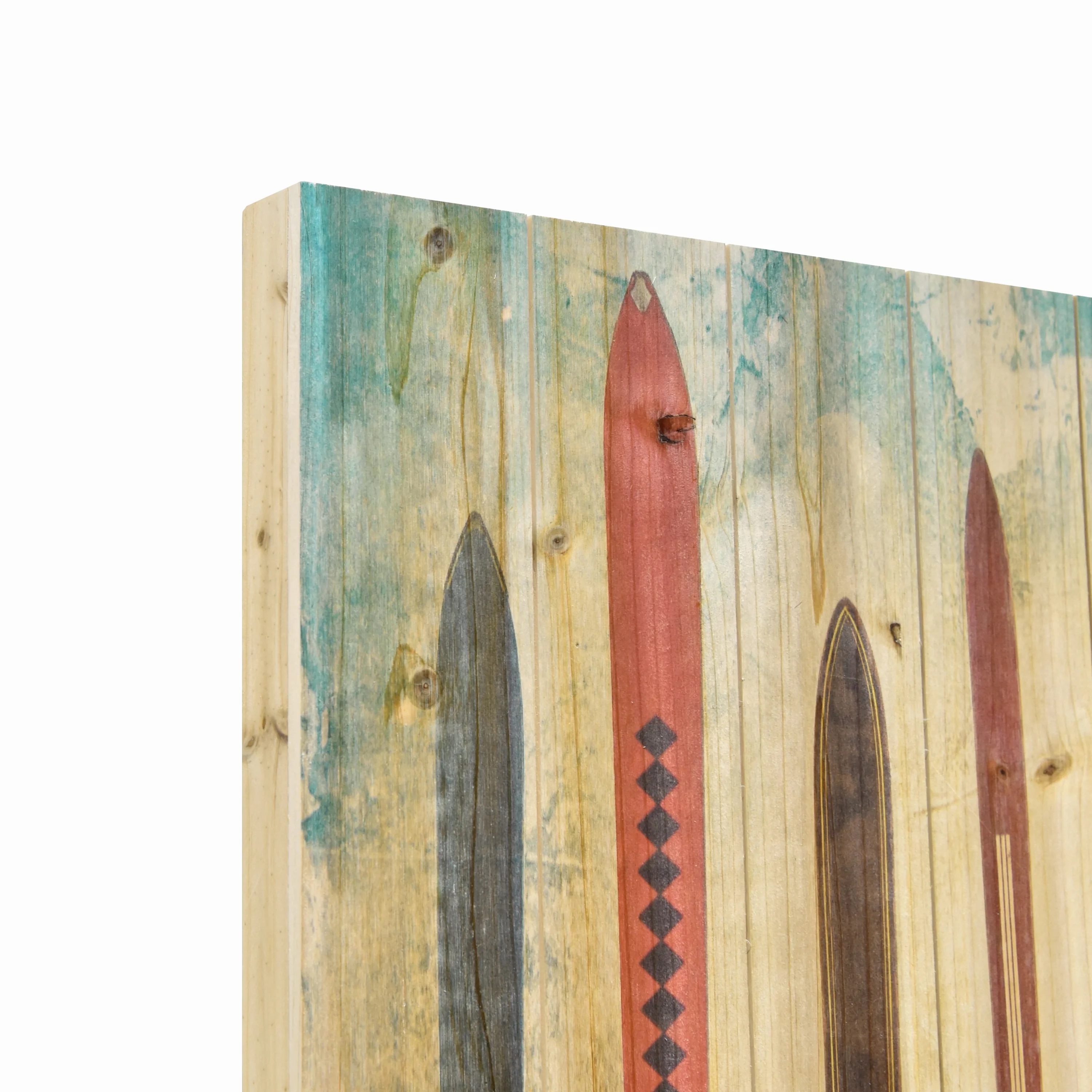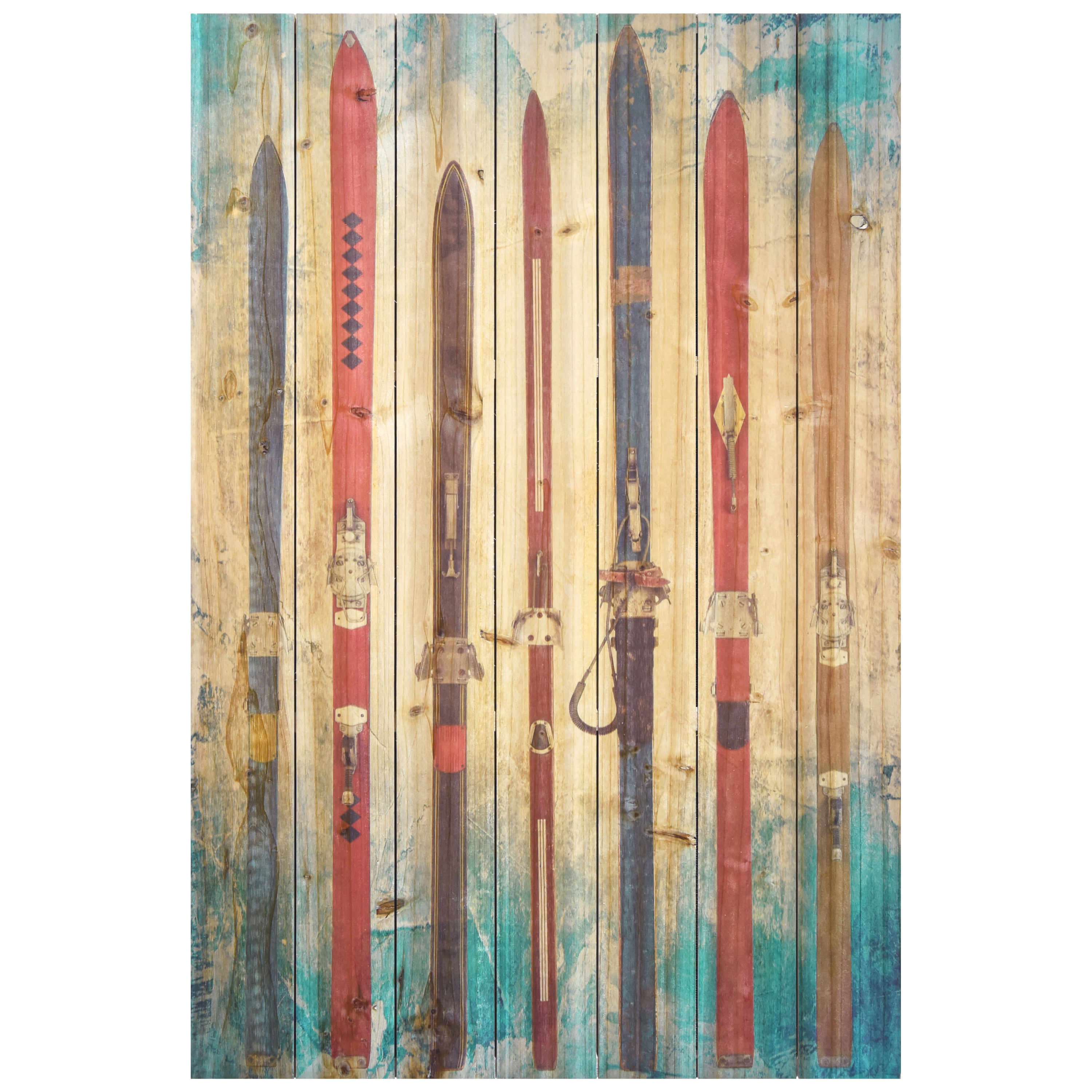 "Retro Skis" Arte de Legno Digital Print on Solid Fir Wood Planks Wall Art